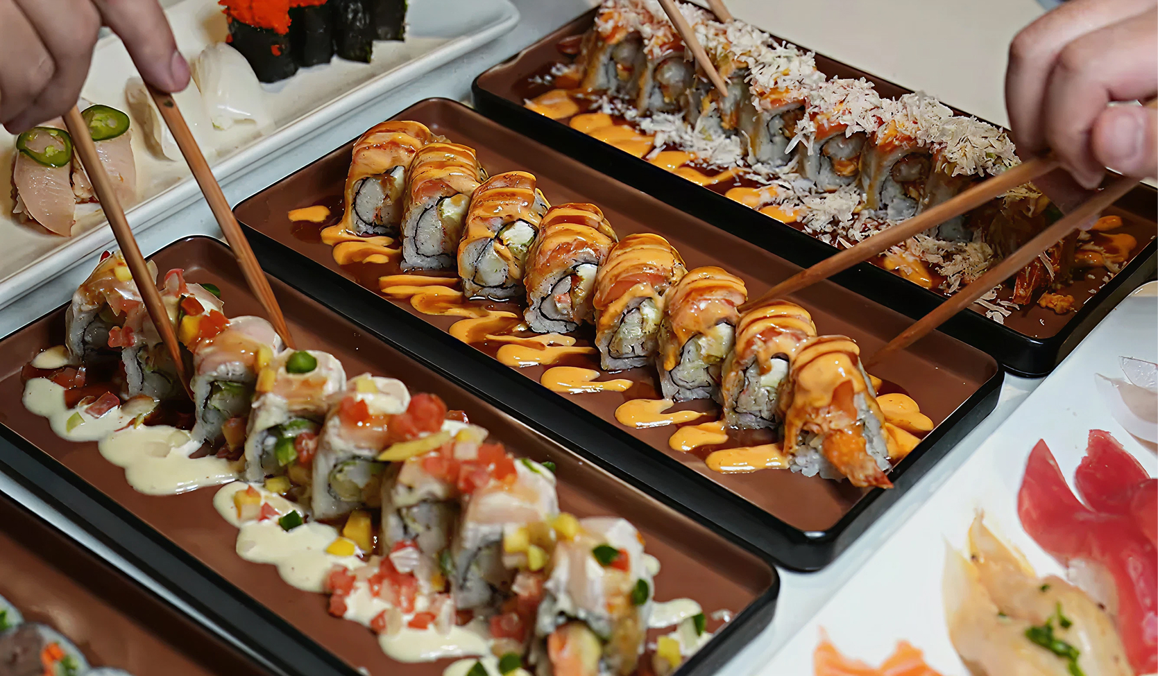 All-you-can-eat (AYCE) sushi spot located inside the Cheongdam Food Hall in Las Vegas, offering a vibrant, casual dining experience with fresh, high-quality rolls and nigiri.
